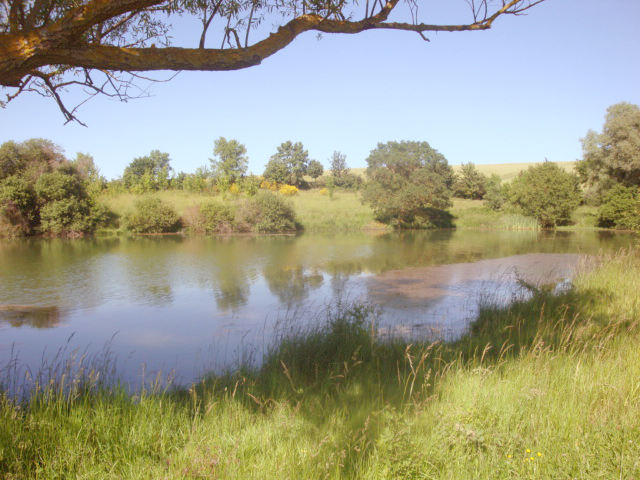 La chaleur qui règne en ce moment n’est pas vraiment favorable à la promenade. Mes chiens se brûlent les pattes sur le macadam et il y a peu de chemins dans mon Lauragais trop cultivé. Heureusement il nous reste le lac. Ce lac de la Thésauque alimenté par la petite rivière du même nom qui a été créé il y a des années pour servir de réserve d’eau aux agriculteurs.
