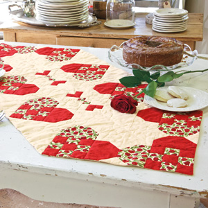 Autre coeur vite fait, ce modèle amusant fait à partir d’un nine patch. Parfait pour réaliser un centre de table . C’est un patron gratuit Mac Call. Si vous ne parvenez pas à le dessiner vous même je crois qu’on peut le télécharger sur le site.