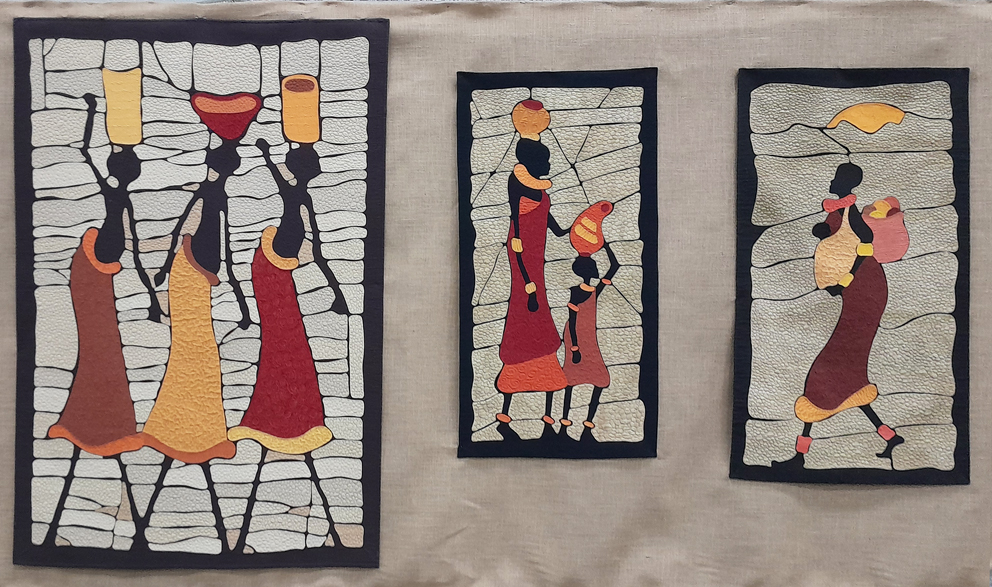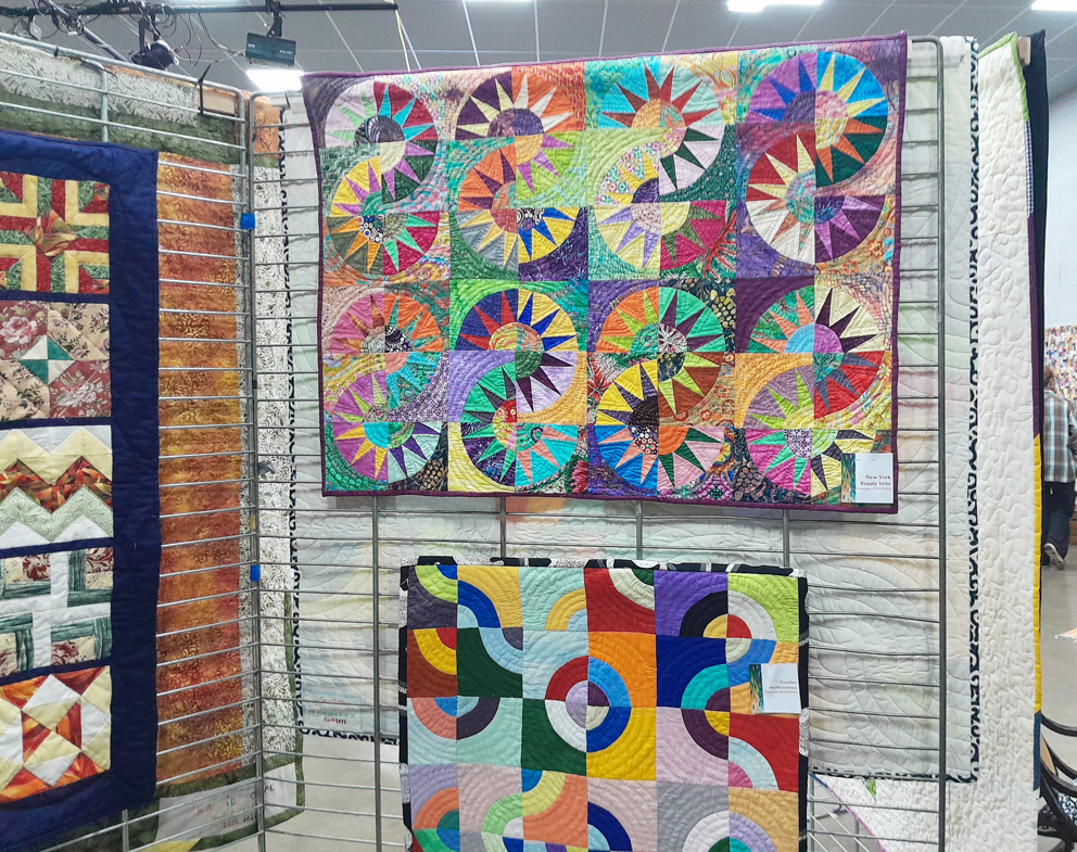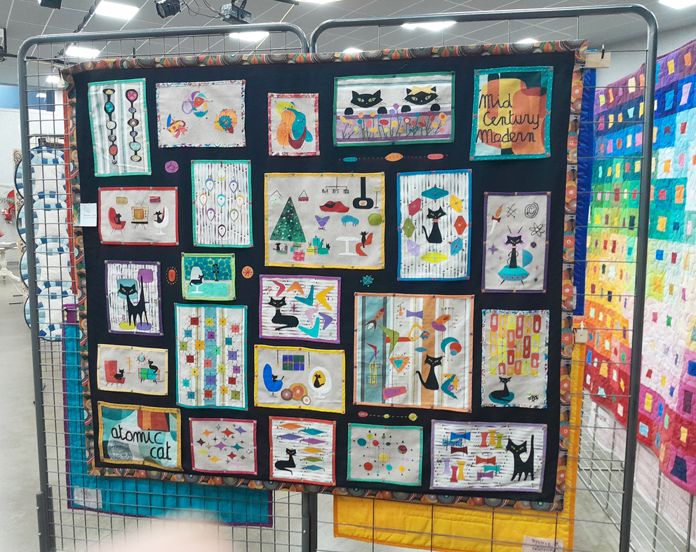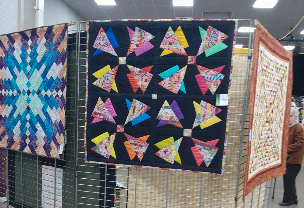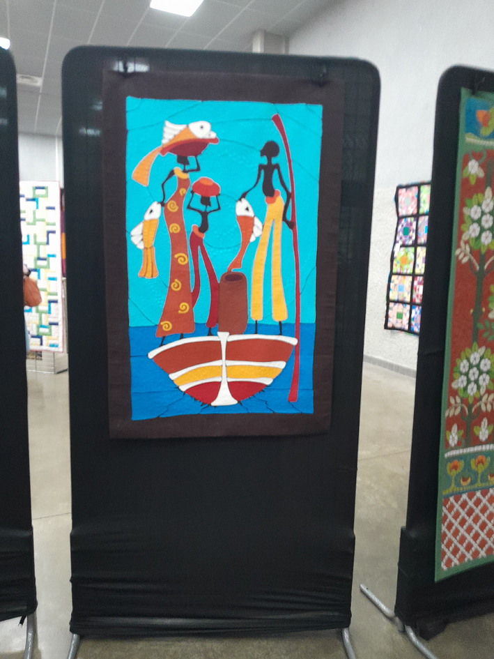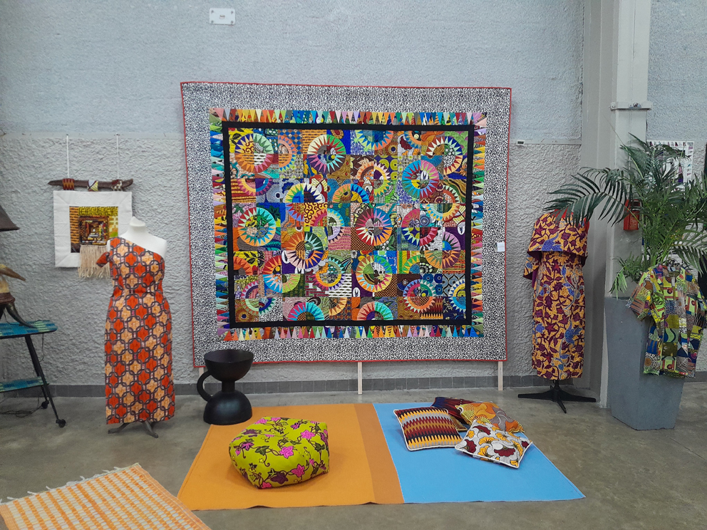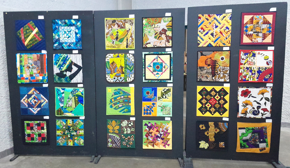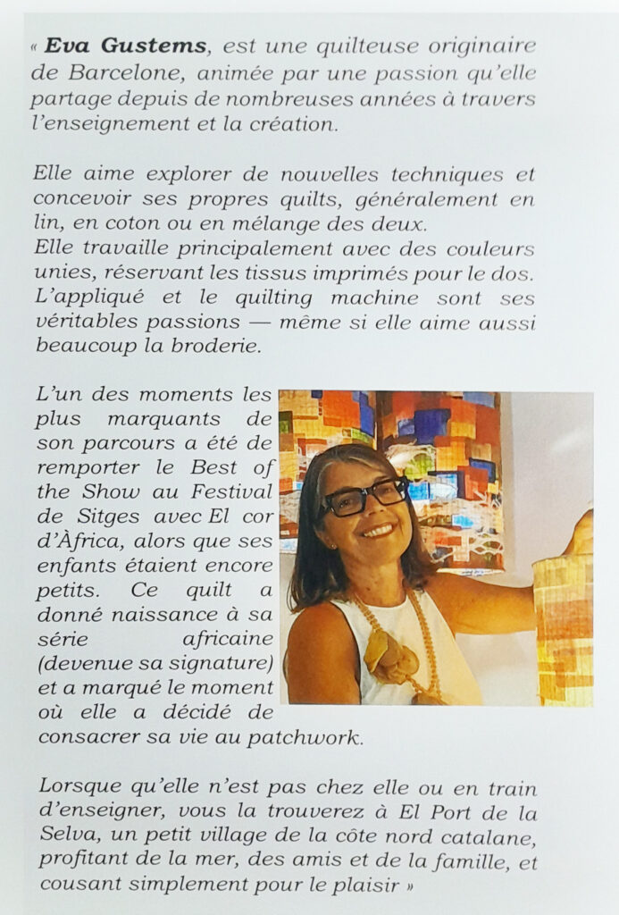 Le week end dernier avait lieu l’exposition de Colomiers, de nombreux quilts parfaitement exécutés avec des techniques très variées et une invitée d’honneur, la charmante et très créative Eva Gustems qui réalise des quilts très originaux. J’ai été particulièrement séduite par ses quilts « africains.