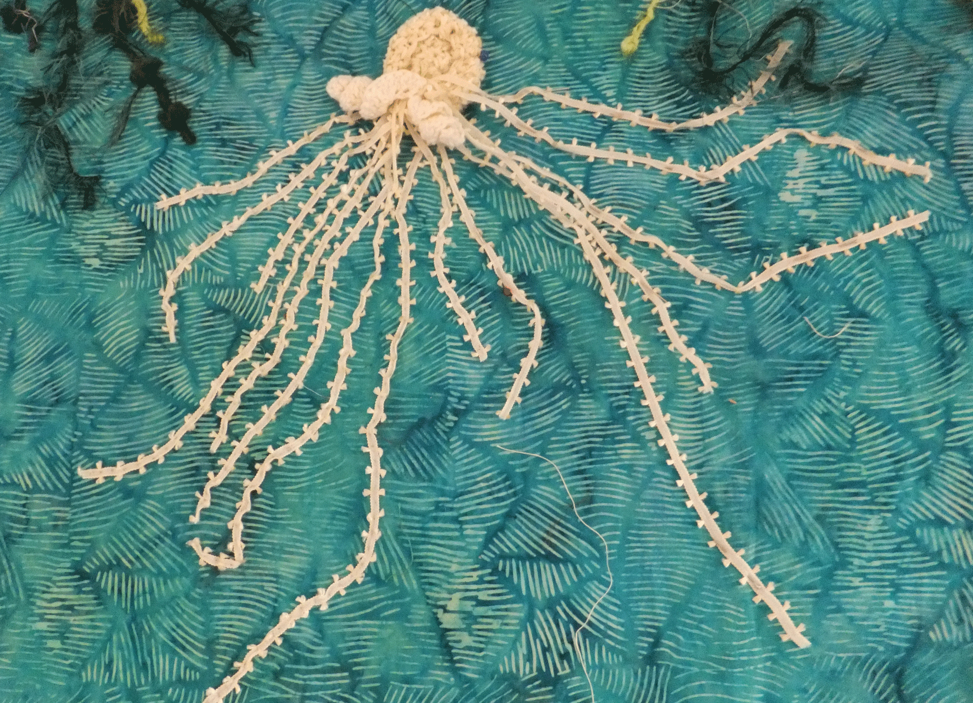 Le quilt marin par exemple utilise des poissons en pliage ce qui évite les longues heures passées à les appliquer et donne beaucoup de relief à l’ensemble